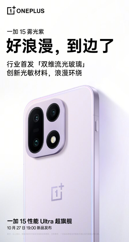 Si bien OnePlus no reveló todas las características del OnePlus 15, sí confirmó las variantes de color que se conocerán como Sand Storm, Absolute Black y Mist Purple.